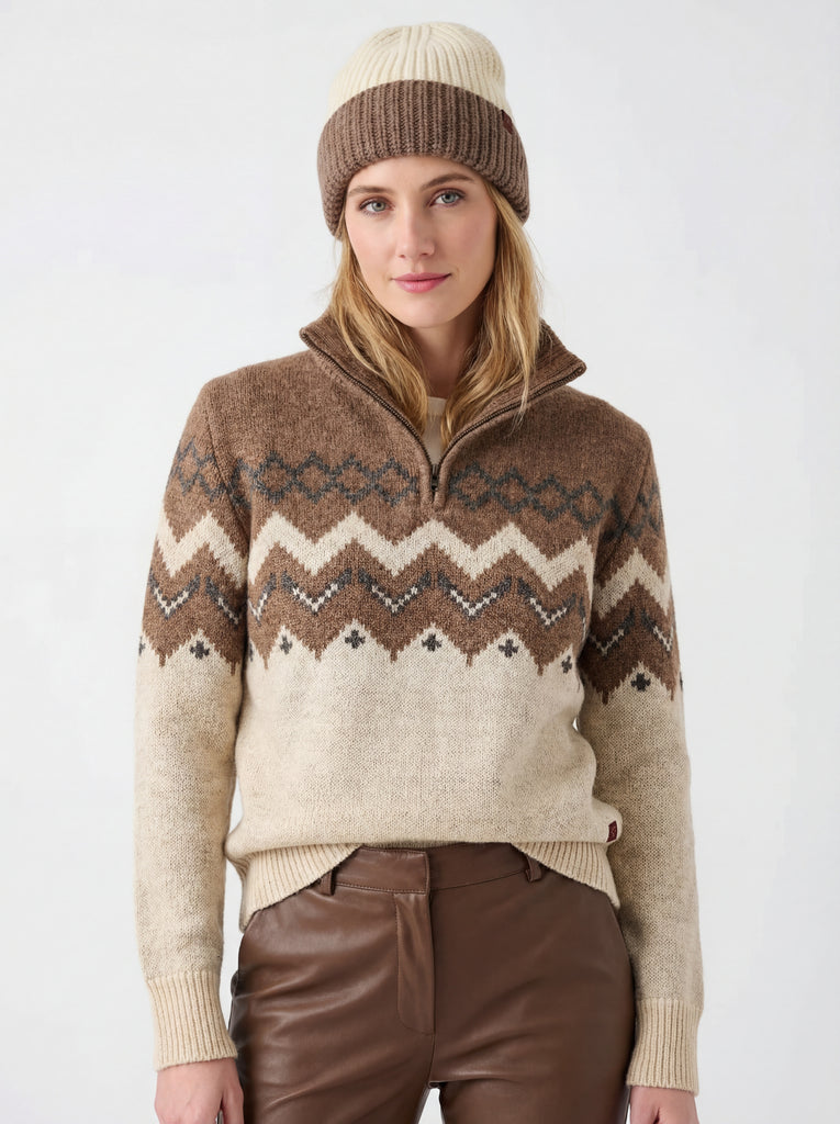 Step into warmth with the Skyward quarter-zip sweater, a women’s essential designed for both everyday wear and refined layering. Its 50/50 blend of wool and alpaca delivers warmth and timeless elegance in equal measure, making it a versatile knit for three seasons.